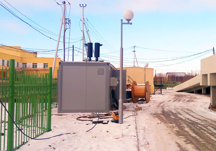 Дизельная электростанция 500 кВт установлена в утепленный блок-контейнер типа "Север" размером 6200мм*2400мм*2700мм с учетом камеры шумопоглощения. Камера шумопоглощения имеет размеры 1000мм*2400мм*2700мм и обеспечивает дополнительное шумопоглощение, которое необходимо из-за близости размещения электроагрегата к зданию Перинатального центра.